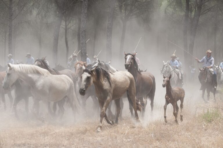 Se trasladan las yeguas de las marismas a Almonte para realizar la Feria de Ganado